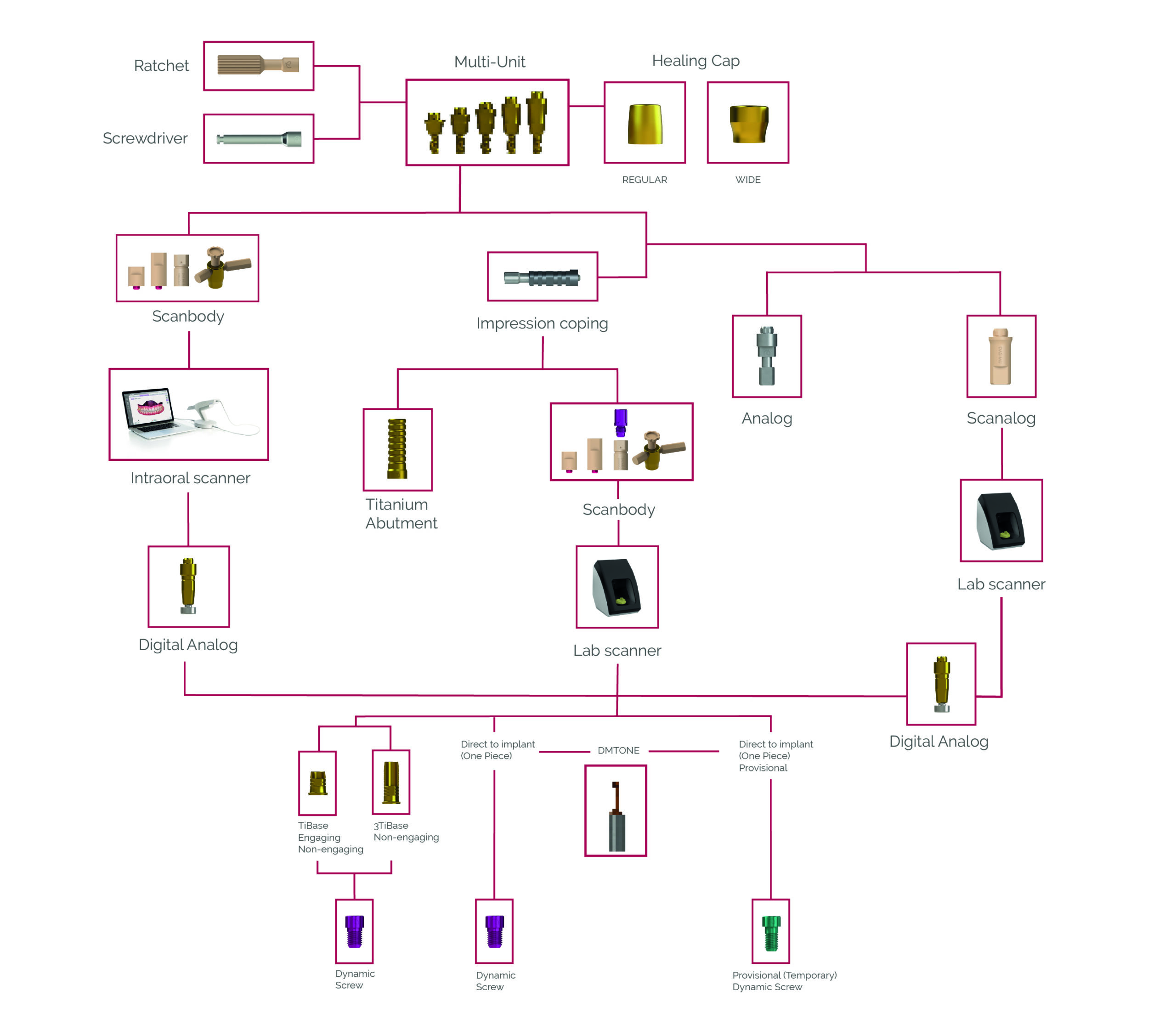 Available in four different heights (1mm, 2mm, 3mm, and 4mm), this implant system caters to a wide range of restoration needs, from individual cases to full or partial edentulous arches. With over 500 compatibilities, three different scanbodies, and direct-to-implant libraries featuring specific implants, the DAS Multi Unit Implant System provides unmatched quality and precision for dental implant procedures.
